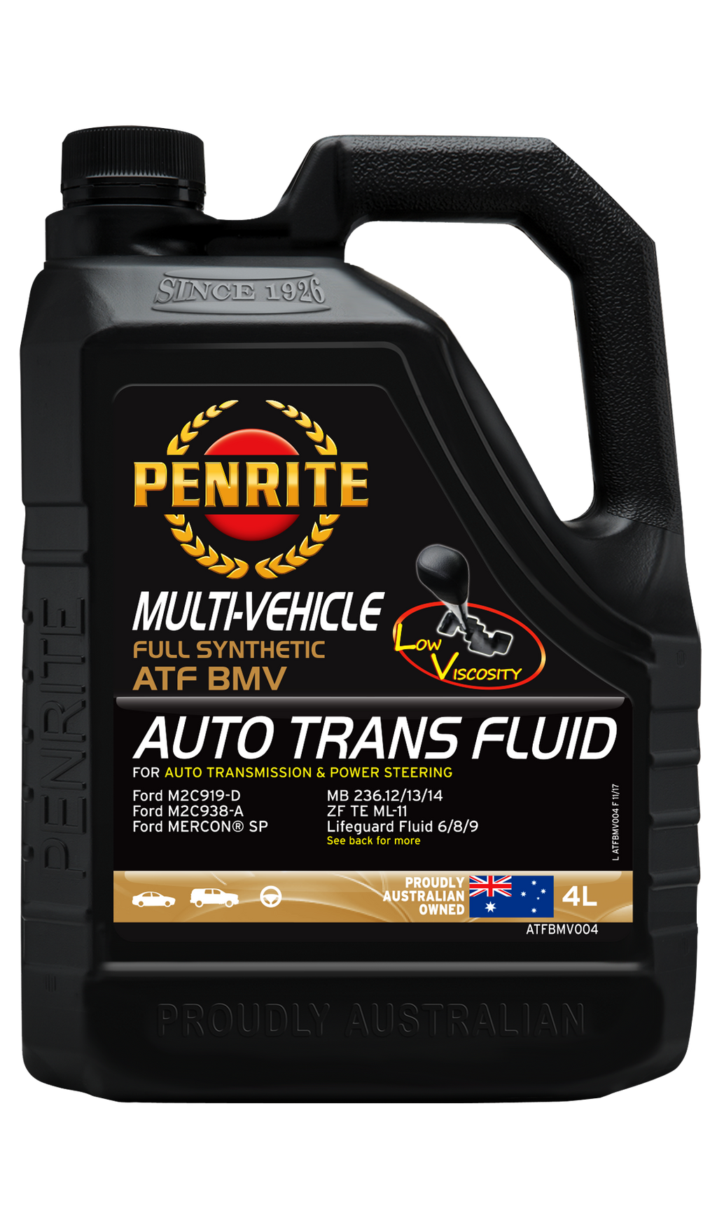 ATF BMV is a highly advanced, low viscosity, Full Synthetic, multi vehicle automatic transmission fluid designed for the latest generation of European, Asian and US sourced Automatic Transmissions. It utilises the latest Additive technology for optimum performance, durability and shift quality in modern multi-speed automatic transmissions.